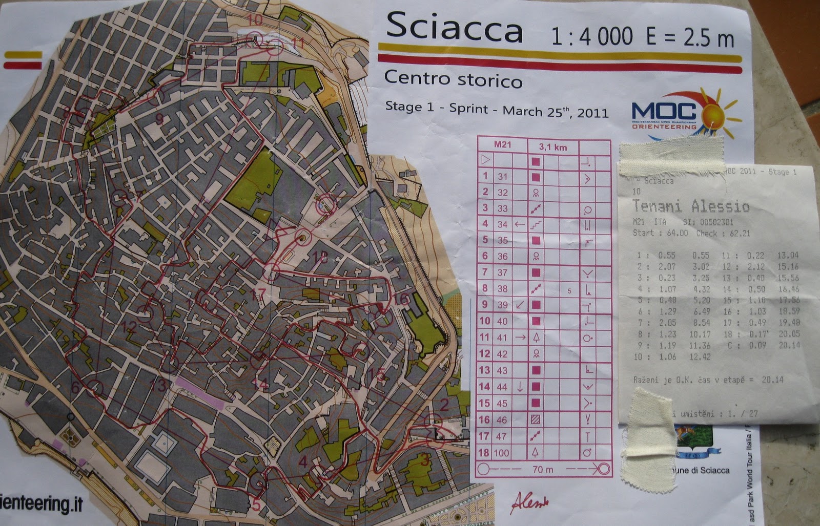 Le prime due giornate di gara qui in Sicilia (MOC - Mediterranean Orienteering Championship) sono state due sprint suggestive, nel centro storico di Sciacca e nel Cretto di Burri (ricostruzione memoriale dopo il terremoto del 1968, foto a lato).
