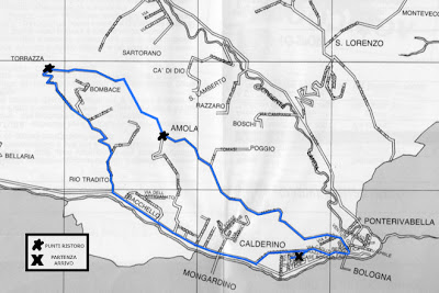 Stamattina bel medio collinare alla podistica dei 4 campanili a Calderino (BO, percorso di 11,5 km >> nell'immagine).